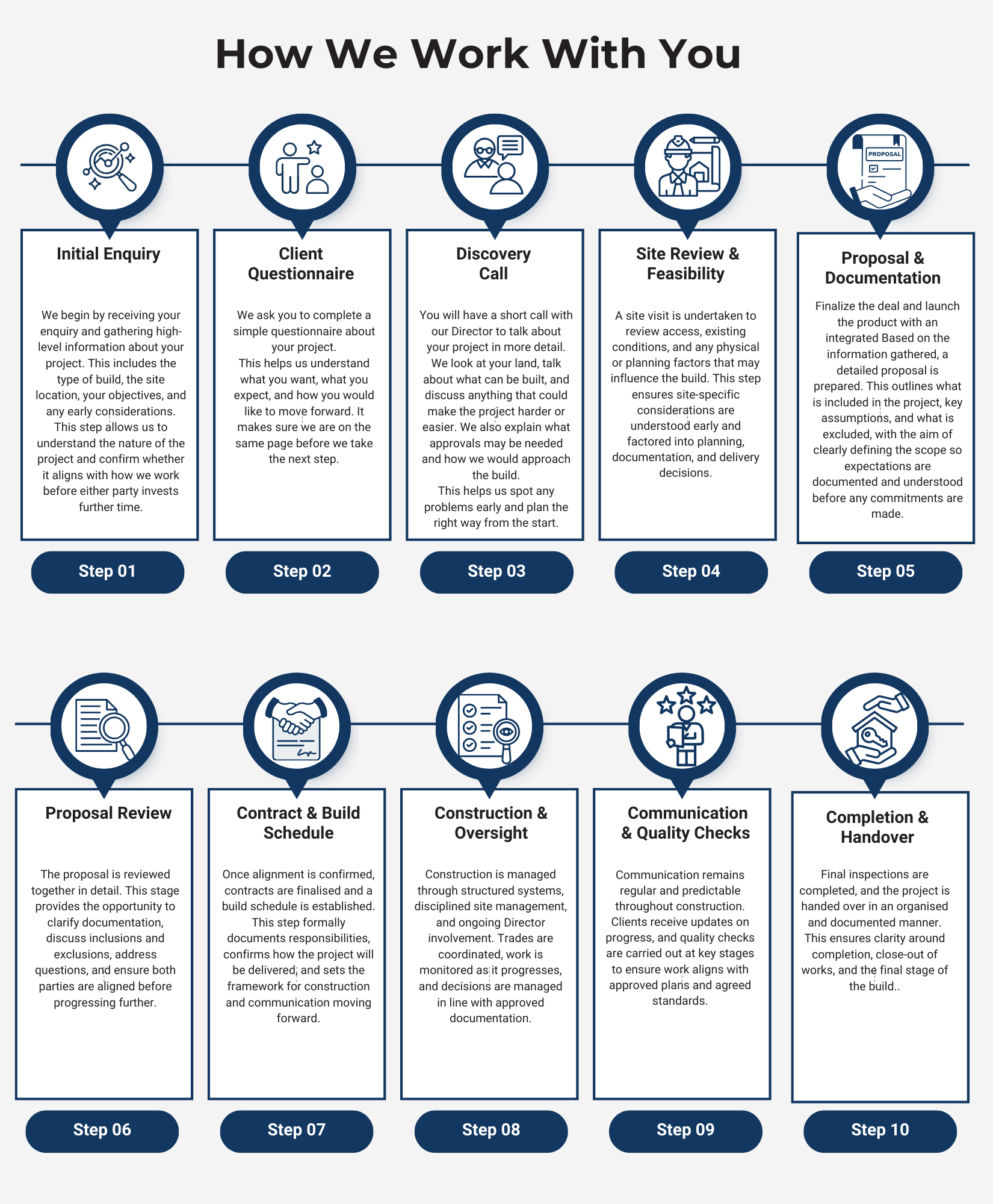 Whether you need a custom build or support throughout the design and approvals process, we work with you to tailor a solution that fits your budget and vision.
